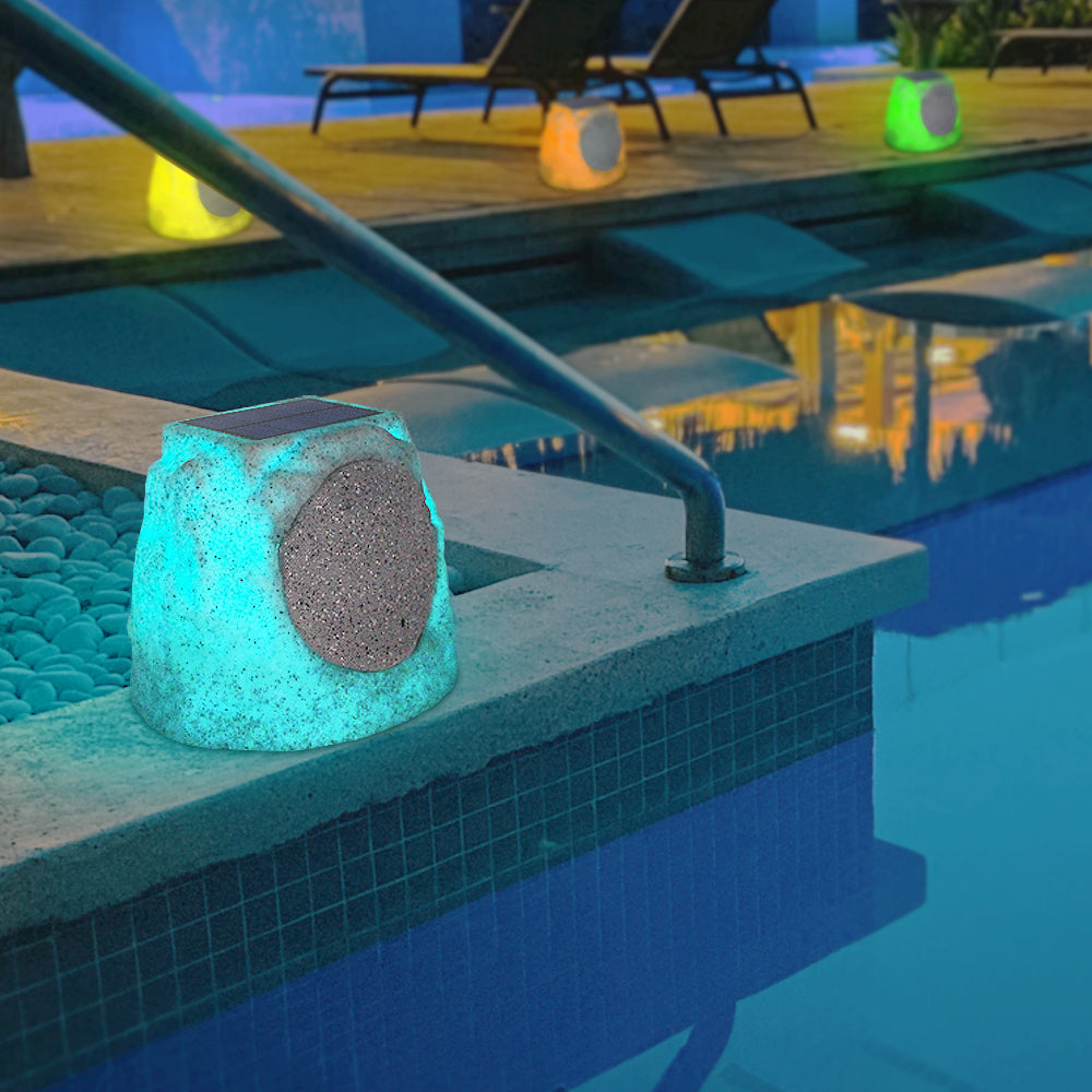 2-PACK Outdoor Solar LED Stone Speaker